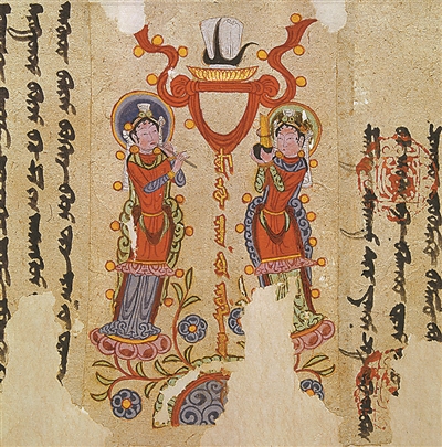 佛教曾是新疆最流行的宗教,絲綢之路上僧侶往來、佛經(jīng)移譯、佛法流布,對(duì)內(nèi)地影響深遠(yuǎn)。此次展覽中的《妙法蓮華經(jīng)》寫本、龜茲貴族供養(yǎng)人像和展板上的蘇巴什佛寺、克孜爾石窟205窟龜茲王托提卡和王后壁畫等,使我不禁想起了在佛教傳播史上具有劃時(shí)代意義的千古一僧——鳩摩羅什。