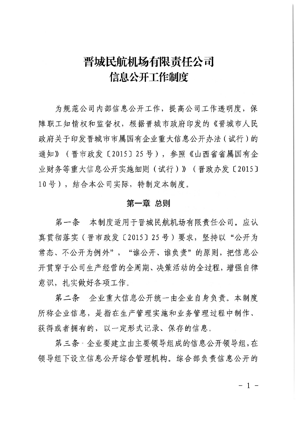 關(guān)于印發(fā)《晉城民航機(jī)場有限責(zé)任公司信息公開工作制度》的通知