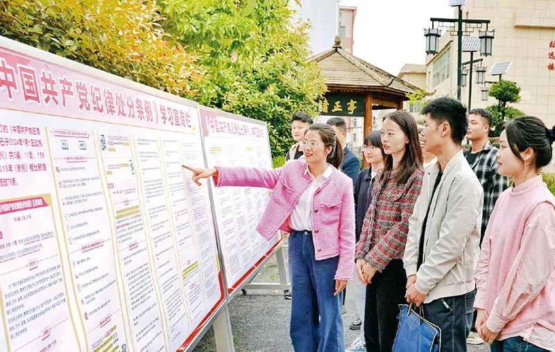 在全黨開展黨紀(jì)學(xué)習(xí)教育,是加強(qiáng)黨的紀(jì)律建設(shè)、推動全面從嚴(yán)治黨向縱深發(fā)展的重要舉措。連日來,各地區(qū)各部門各單位精心謀劃部署、抓住學(xué)習(xí)重點(diǎn),推動黨紀(jì)學(xué)習(xí)教育走深走實(shí)。圖為2024年4月10日,江西省蘆溪縣紀(jì)委監(jiān)委干部在《中國共產(chǎn)黨紀(jì)律處分條例》學(xué)習(xí)宣傳欄前交流。 鄧建萍/攝