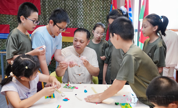在剛健的軍事訓(xùn)練之外,傳統(tǒng)文化的滋養(yǎng)為暑托班增添了溫潤(rùn)的底色。皮影戲的光影流轉(zhuǎn)間,孩子們驚嘆于非遺技藝的奇妙;博物館專家走進(jìn)東航,用生動(dòng)的講解揭開歷史文物的面紗,讓千年文化在孩子們眼中鮮活起來;集體繪畫長(zhǎng)卷上,他們以童真筆觸勾勒出心中的祖國(guó)與東航;手工制作課上,面塑等傳統(tǒng)技藝的體驗(yàn),讓孩子們?cè)趧?dòng)手間感受先輩智慧。從傳統(tǒng)藝術(shù)到歷史底蘊(yùn),多元課程讓民族自豪感在孩子們心中油然而生。
